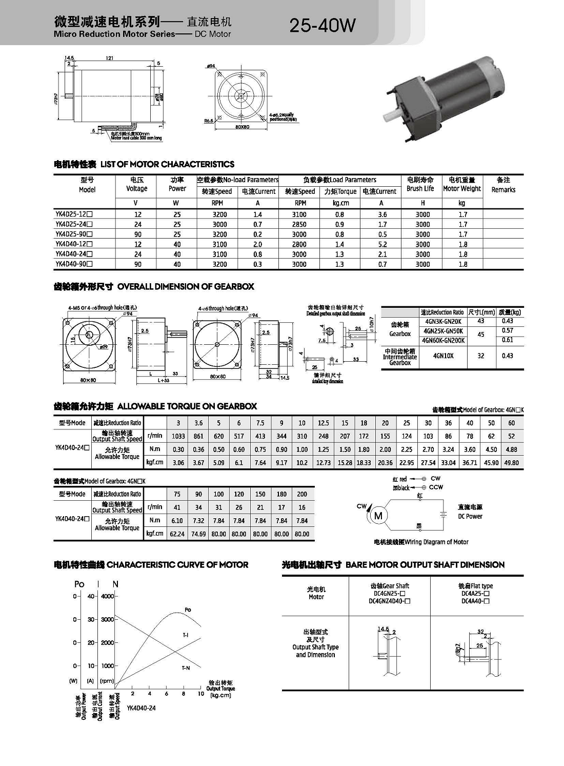 微型直流有刷減速電機系列-直流電機25W-40W